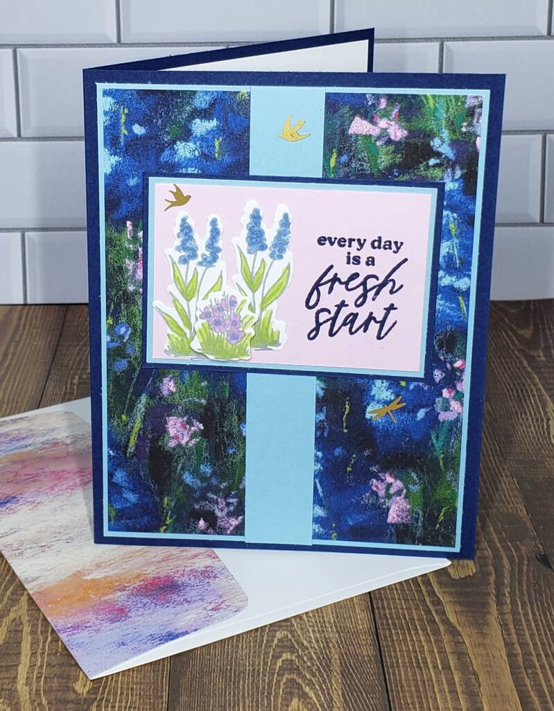 One more day and the Online Exclusives launch. Today's Basic Card Layout #25 uses the Meandering Meadows Suite of products. The 6 x 6 DSP is soooooo amazing. I couldn't even cut it at first! Then when I did I had to use all of the 6 x 6 sheet. Come back tomorrow to find out how to cut a card layout using ALL of a 6 x 6 piece.