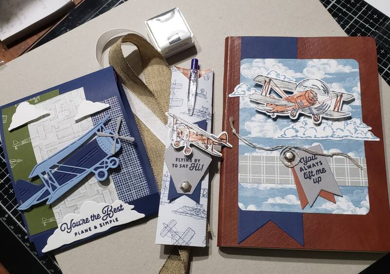 Here is the swag bag that I cased from the Kitchen Table Stamper demo at On Stage for our local Catalog Launch Demo meeting. I only show a few of the items included in the swag bag. The Swag Bag uses the Take to the Sky Suite, Adventurous Sky Bundle, Industrial Trinkets, Take to the Sky Designer Series Paper. (Page 36 and 37 of the NEW Annual Catalog or may be viewed online as of May 1, 2024)