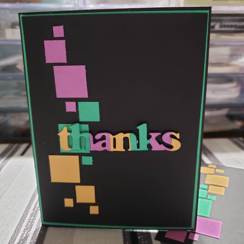 Love the thank you card!! What a great way to use your scraps, and the black background makes your colors pop!
